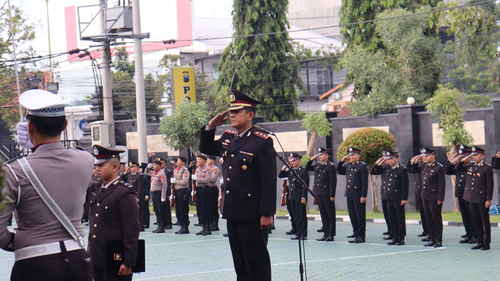 Upacara dilangsungkan di halaman Mapolresta dan dipimpin oleh Wakapolresta Banyuwangi, AKBP Teguh Priyo Wasono, S.I.K.