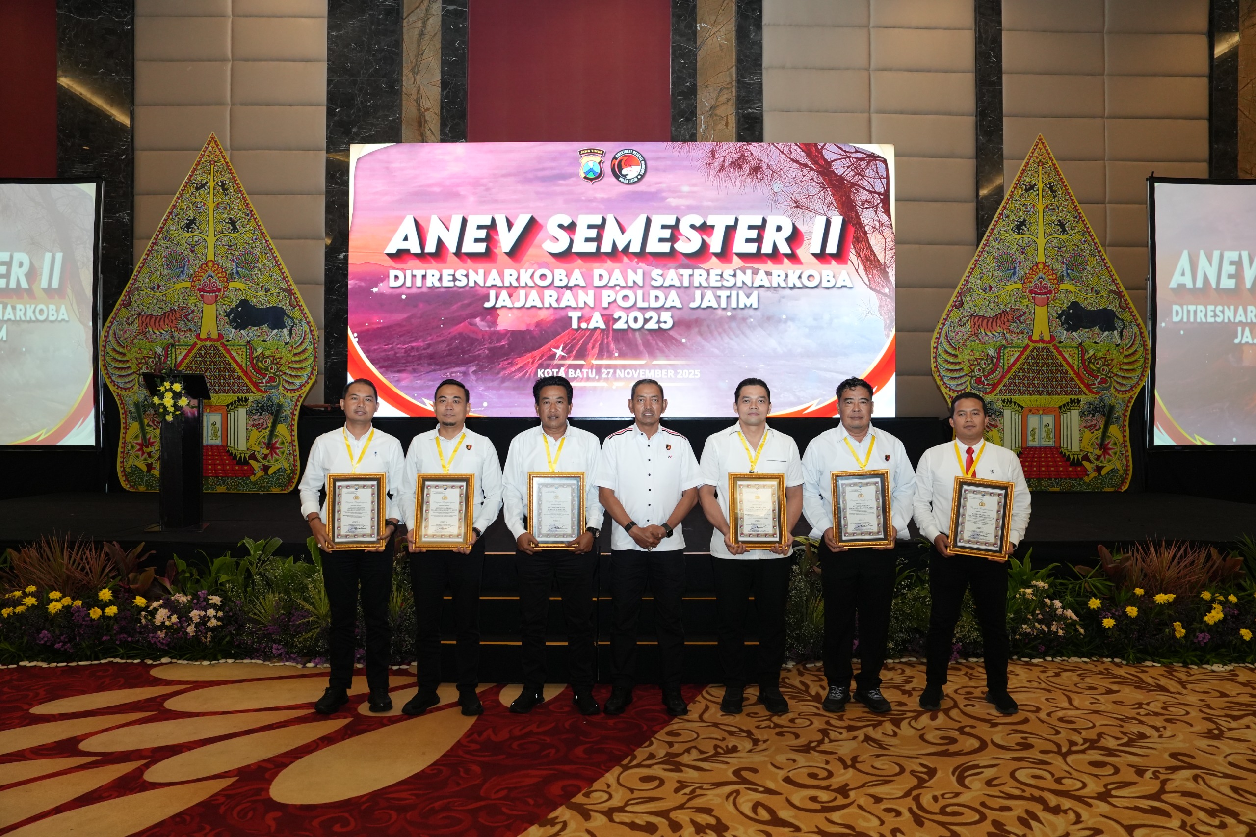 Penghargaan di terima Kasat Resnarkoba Kompol Nanang Sugiono,S.H., M.H., setelah Satresnarkoba Polresta Banyuwangi mencatatkan hasil signifikan berupa barang bukti yang berhasil diamankan, yakni: 8.310,55 gram sabu, 32,35 gram ganja, 4.626 butir ekstasi, dan 202.364 butir okerbaya.