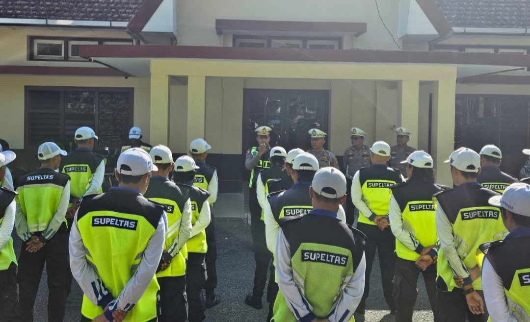 memberi arahan para personel Supeltas yang terploting untuk melaksanakan tugas pengamanan jalur dengan sebaik-baiknya.
