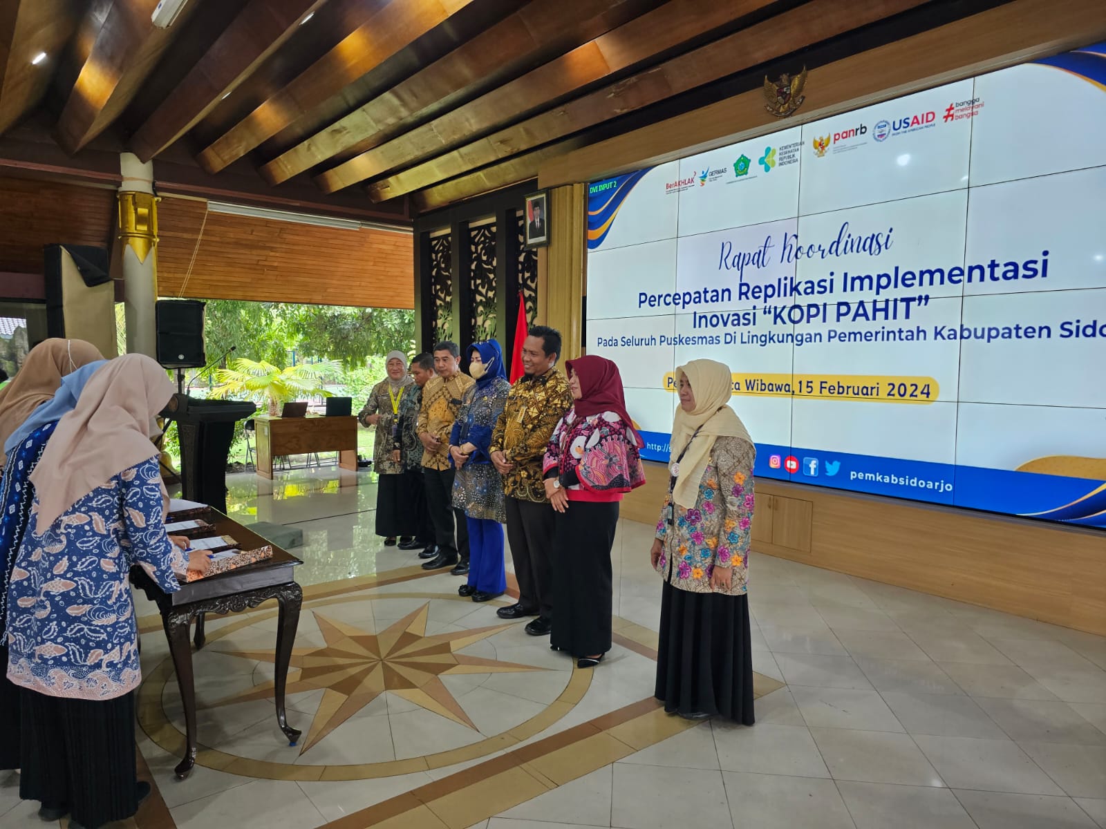 Dalam upaya memperluas keberhasilan program ini, Pemerintah Kabupaten Sidoarjo melakukan MoU dengan 30 Kepala Puskesmas se-Kabupaten Sidoarjo untuk melakukan replikasi Inovasi KOPI PAHIT. Penandatanganan MoU ini dilakukan dalam Rakor Percepatan Implementasi Inovasi KOPI PAHIT yang diadakan di Pendopo Delta Wibawa Pemkab Sidoarjo pada hari Kamis (15/2/2024).