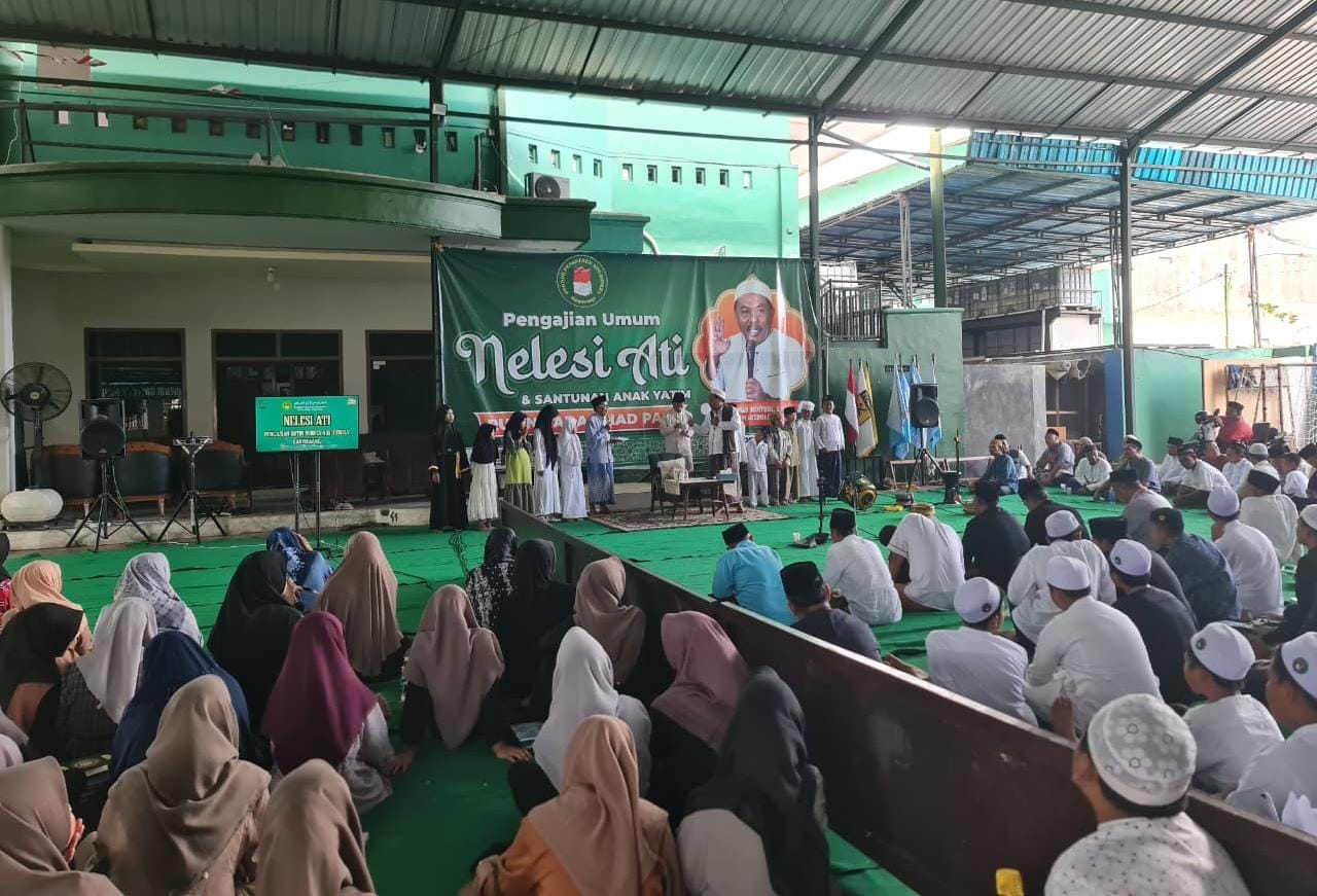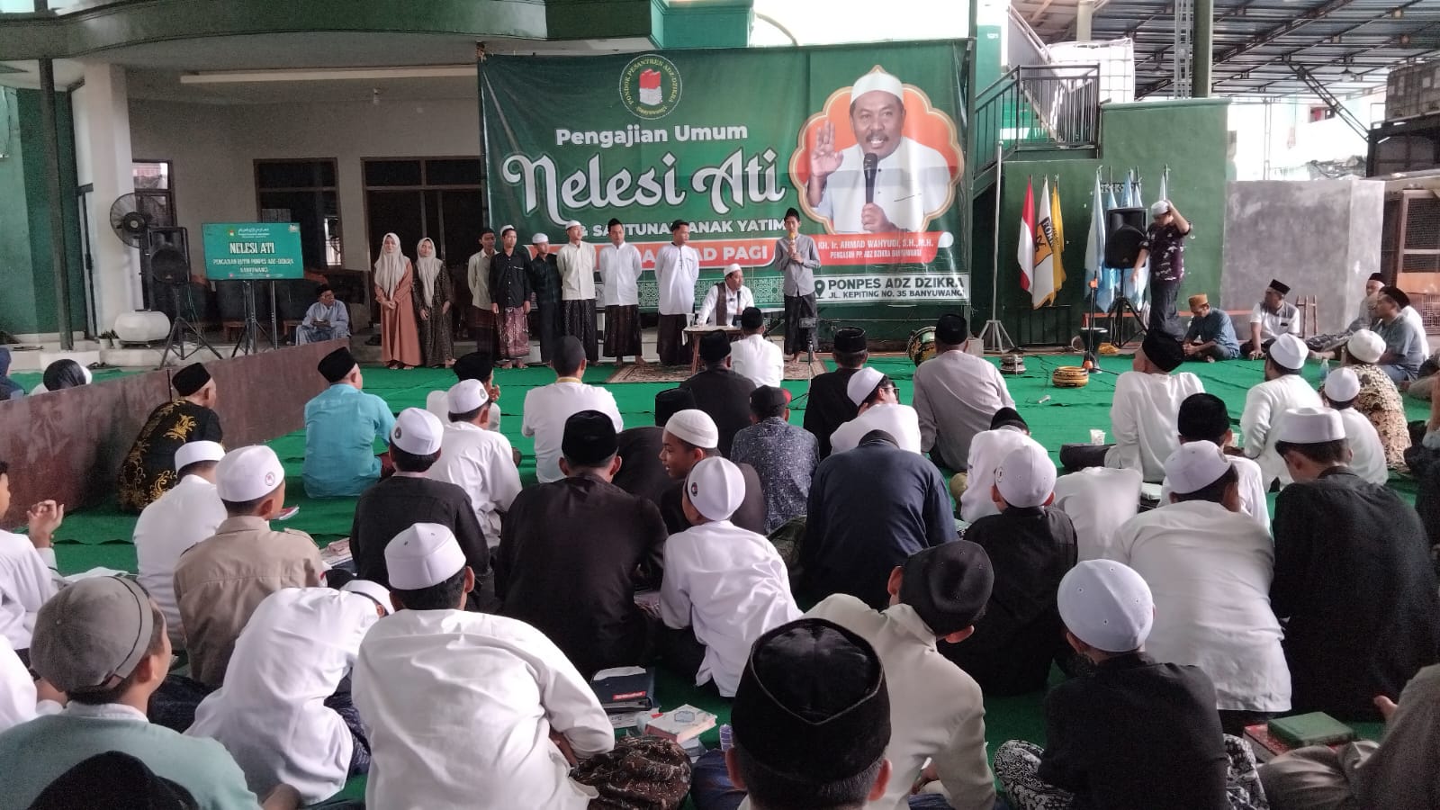 Ciri khas pengajian “Nelesi Ati” juga tampak dari kebersamaan para santri yang membagikan konsumsi berupa nasi lengkap dan air mineral secara tertib, mencerminkan nilai edukatif sekaligus pembinaan karakter.