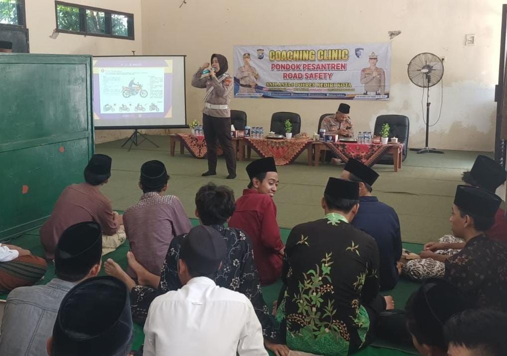 KOTA KEDIRI, Actanews.id – Menyambut Hari Bhayangkara ke-79, Satlantas Polres Kediri Kota Polda Jatim menggelar Coaching Clinic Road Safety di Pondok Pesantren (Ponpes) Salafiyyah, Bandar Kidul, Mojoroto, Kota Kediri.