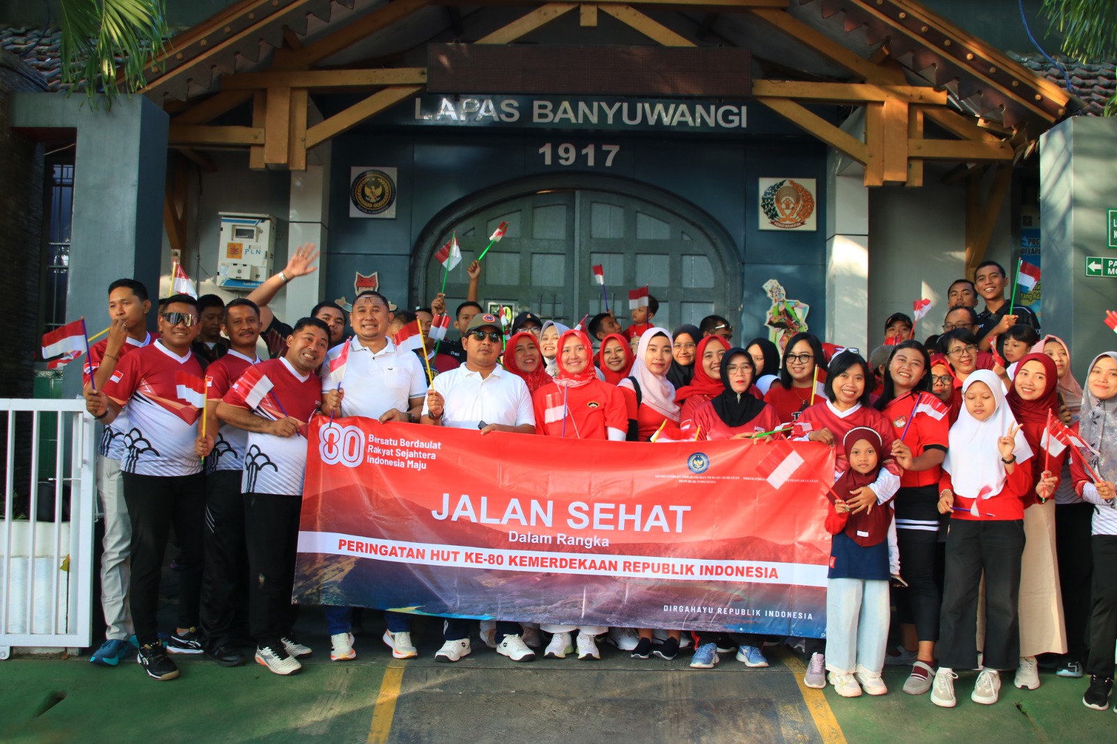 Kepala Lapas Banyuwangi, I Wayan Nurasta Wibawa, menyampaikan bahwa kegiatan jalan sehat tidak hanya bertujuan memeriahkan peringatan kemerdekaan, tetapi juga sebagai upaya menjaga kesehatan jasmani dan mempererat kebersamaan.