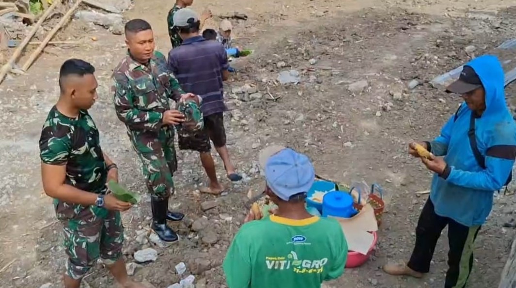 Kegiatan istirahat ini tidak sekadar melepas lelah, tetapi juga menjadi momen mempererat ikatan emosional antara anggota Satgas TMMD dan masyarakat sekitar. Para prajurit dan warga tampak saling bercengkerama, berbagi cerita, hingga menikmati makanan bersama dalam suasana hangat dan penuh keakraban.