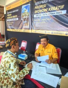 Sumenep, Jawa Timur – Dalam upaya meningkatkan profesionalisme dan kompetensi pelaku ekonomi kreatif di sub sektor kriya logam keris, Kementerian Pariwisata dan Ekonomi Kreatif Republik Indonesia bekerja sama dengan Lembaga Sertifikasi Profesi Perkerisan Indonesia (LSP 3 Perkerisan) menggelar kegiatan Sertifikasi Kompetensi Profesi di Desa Aeng Tong-tong, Kecamatan Saronggi, Kabupaten Sumenep, Madura. Acara ini berlangsung selama dua hari, yaitu pada 14-15 Agustus 2024.