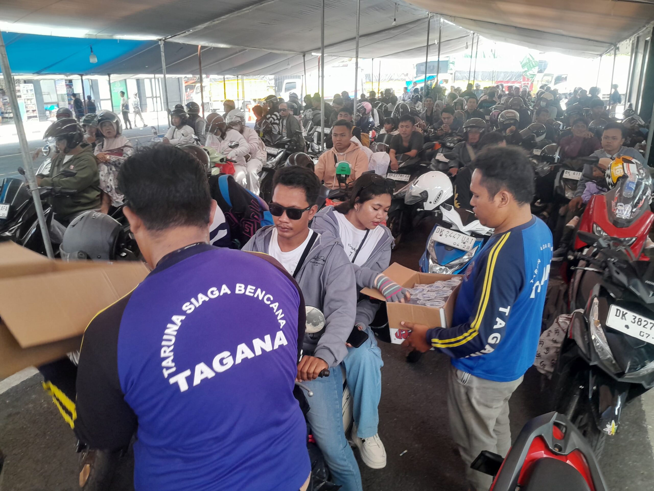Kegiatan ini sebagai bentuk kepedulian Tagana terhadap masyarakat, khususnya para pengguna jasa penyeberangan yang membutuhkan bantuan di tengah kondisi antrean dan ini sebagai wujud nyata.