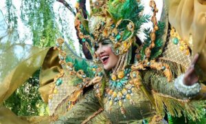Actanews.id – Parade fashion kontemporer Banyuwangi Etno Carnival (BEC) 2024 kembali digelar dengan spektakuler. Ribuan pasang mata menjadi saksi keseruan puluhan talent menampilkan aneka kostum yang sangat menarik disepanjang Cat Walk jalan raya. Sabtu (13/07/2024).