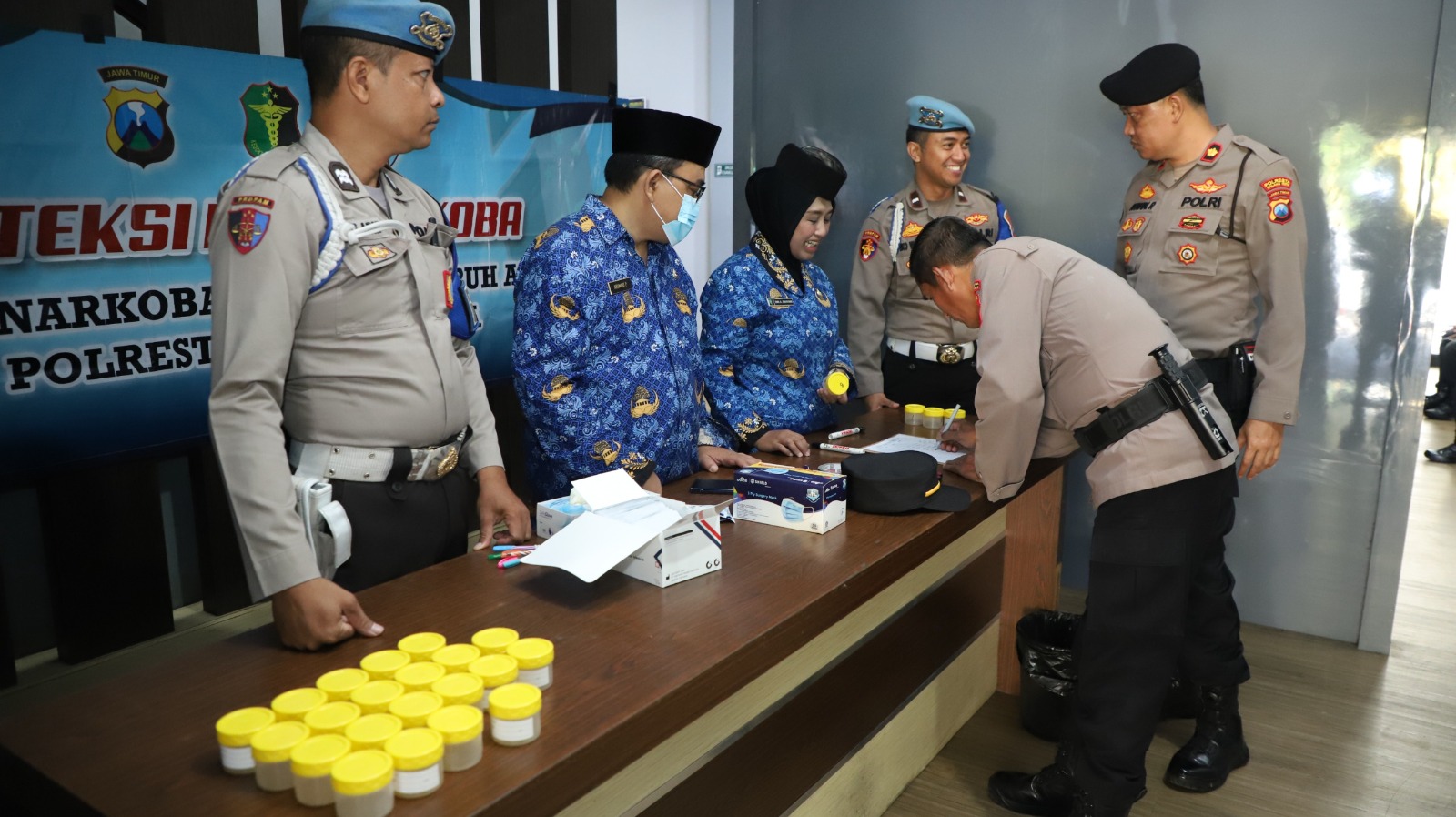 Tes Urine ini bagian dari deteksi dini penyalahgunaan narkoba yang digelar oleh Seksi Kedokteran dan Kesehatan (Dokkes) bersama Seksi Profesi dan Pengamanan (Propam) serta Paminal Polresta Malang Kota.