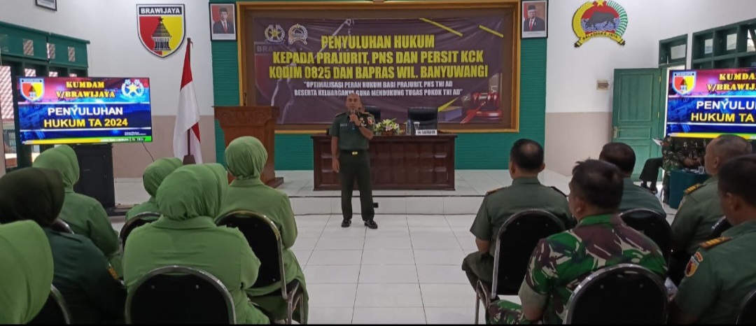 Banyuwangi, Actanews.id  – Kodim 0825/Banyuwangi menerima penyuluhan hukum dari Tim Hukum Kodam V/Brawijaya yang bertempat di aula Panglima Sudirman Jalan RA Kartini Nomor 02 Kepatihan Kabupaten Banyuwangi. Rabu (15/5/2024).