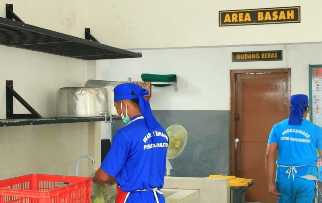 Pentaan ulang meliputi pemisahan proses pegolahan makanan basah dan kering, pemisahan tempat pencucian bahan makanan dan alat memasak, serta mensterilkan area penyajian makanan yang akan didistribusikan kepada Warga Binaan.
