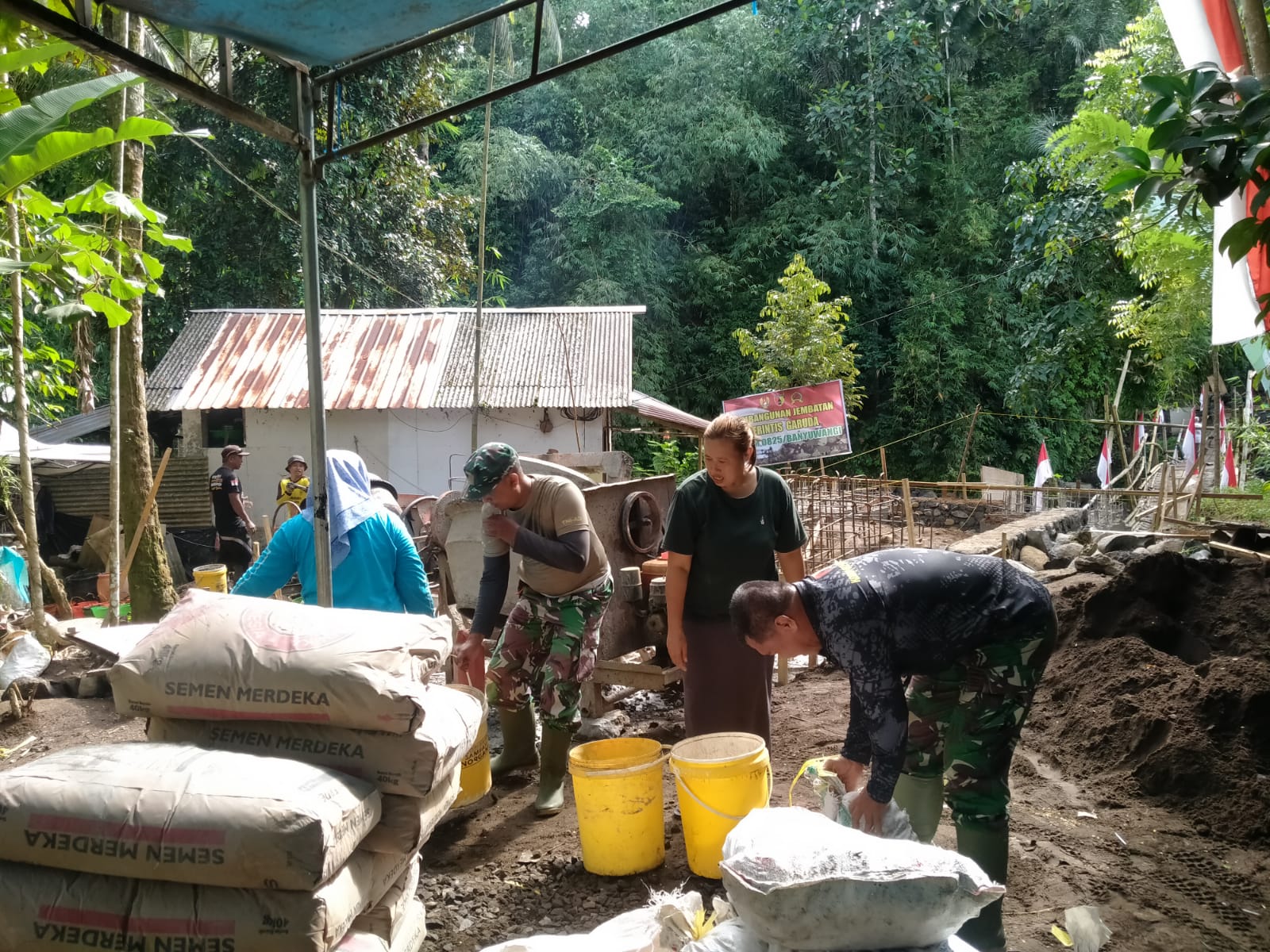 BANYUWANGI, 11 April 2026 — Pembangunan Jembatan Perintis Garuda Tahap III di Desa Songgon, Kecamatan Songgon, Kabupaten Banyuwangi, terus menunjukkan progres signifikan. Memasuki hari ke-14, kegiatan Karya Bakti TNI yang dipimpin Komandan Koramil 0825/20 Songgon, Kapten Kav Andoko, berlangsung dengan semangat tinggi dan kerja sama solid antara TNI dan masyarakat.