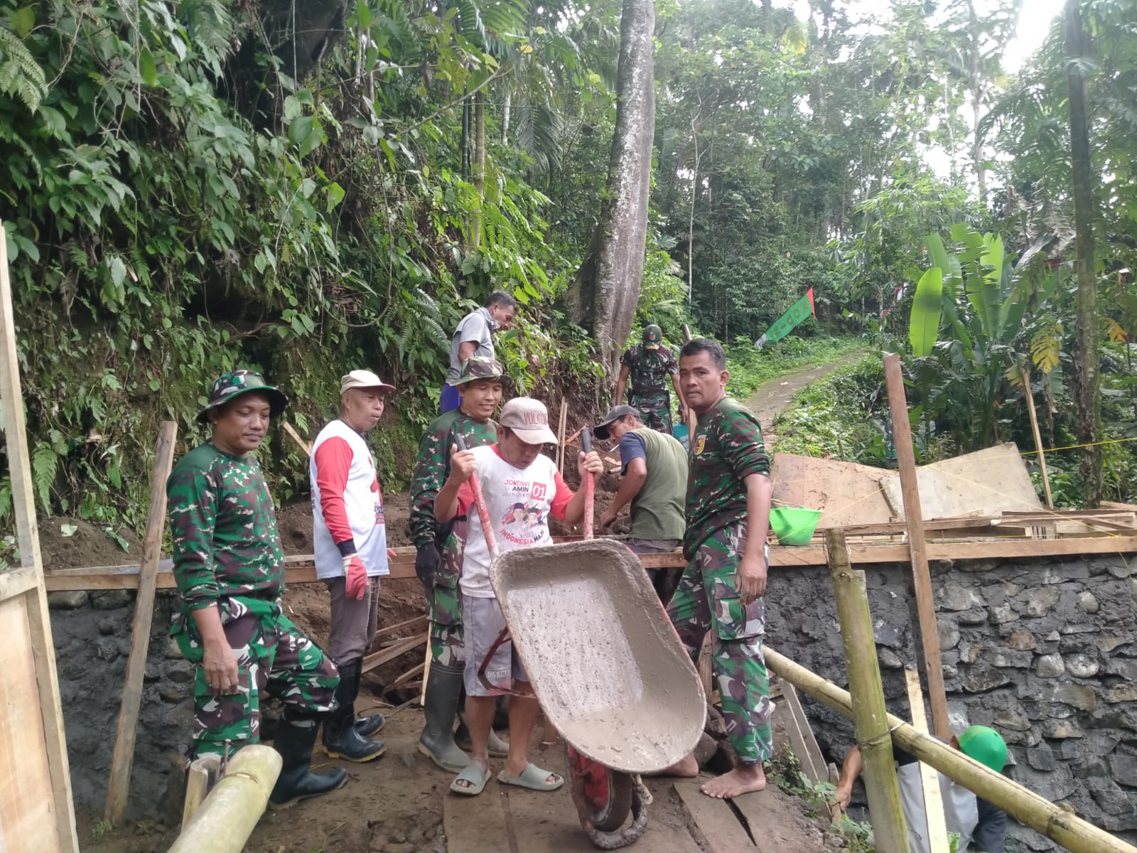 Sinergi juga terlihat dari partisipasi perangkat desa dan tokoh masyarakat, termasuk Sekretaris Desa Songgon serta para kepala dusun. Keterlibatan ini menegaskan bahwa pembangunan jembatan bukan sekadar program militer, melainkan gerakan gotong royong yang melibatkan seluruh elemen desa.