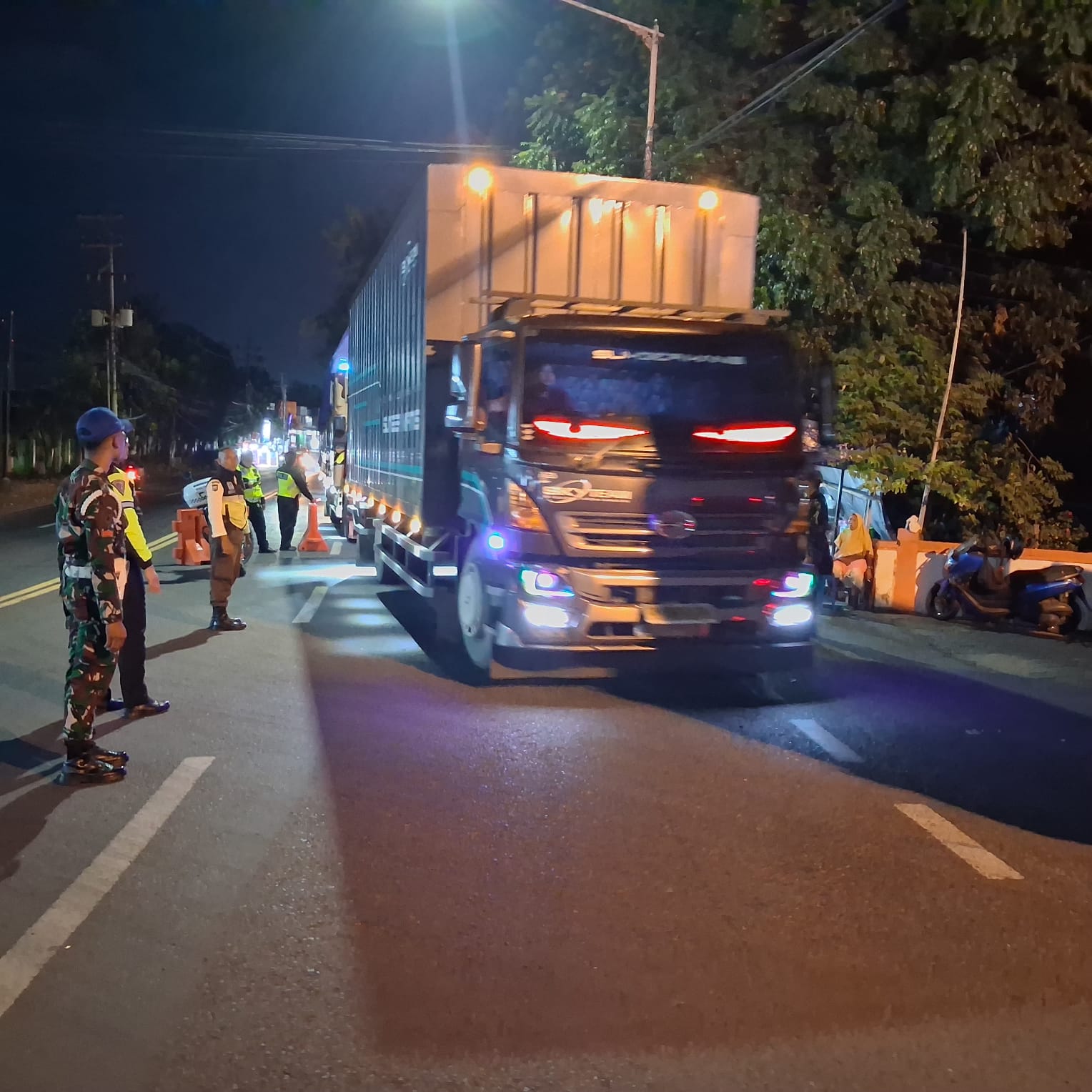 Dalam pelaksanaannya, pengaturan dilakukan secara sistematis melalui dua shift, yakni pukul 21.00–24.00 WIB dan 24.00–06.00 WIB. Setiap titik dijaga empat personel yang secara aktif mengatur arus lalu lintas, mengurai antrean kendaraan, serta memberikan imbauan kepada para pengendara untuk tetap tertib dan mengutamakan keselamatan.