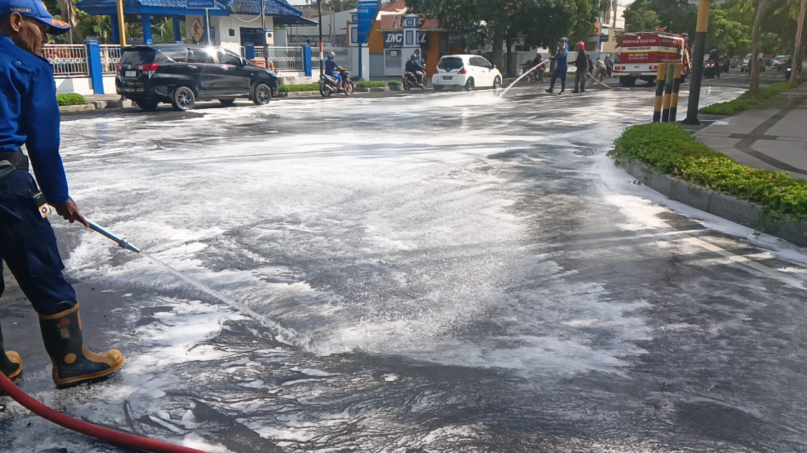 “Penanganan dilakukan secara cepat untuk menghindari kecelakaan di jalan raya akibat jalan licin,” terang Koordinator Lapangan, Sugiarto.