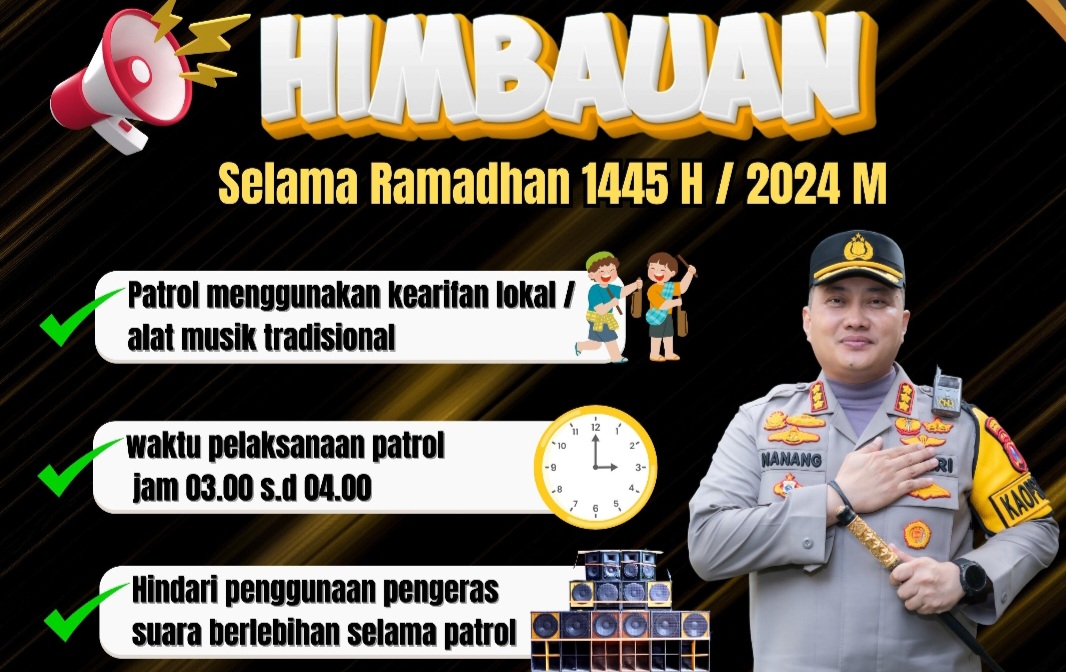 Oleh sebab itu, dalam menjaga suasana tetap aman dan nyaman selama Ramadan, Polresta Banyuwangi menyampaikan beberapa imbauan berkenaan dengan aktivitas patrol.