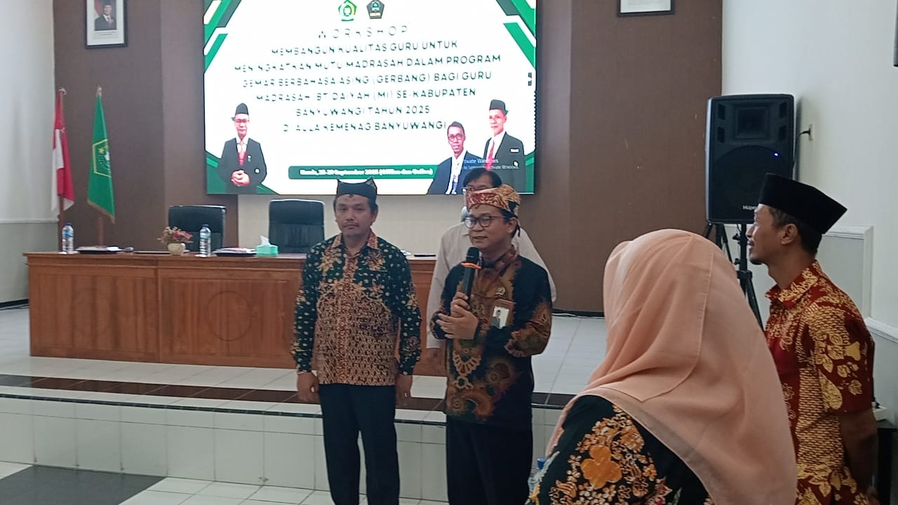 Banyuwangi, Actanews.id — Sebanyak 140 guru Madrasah Ibtidaiyah (MI) se-Kabupaten Banyuwangi mengikuti Workshop Gemar Berbahasa Asing yang digelar Kelompok Kerja Guru Kelas MI pada Kamis, 25 September 2025, di aula bawah Kantor Kementerian Agama Kabupaten Banyuwangi.
