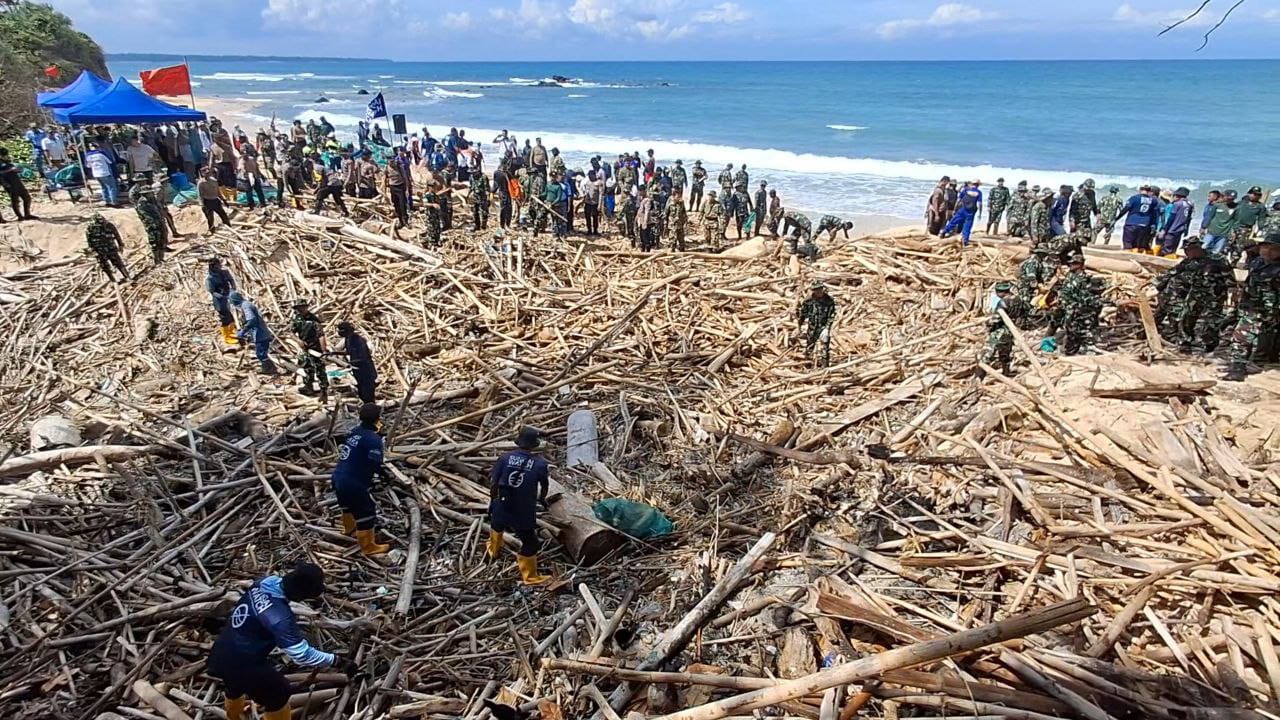 Actanews.id – Aksi heroik terpancar di pesisir Pantai Pancur, Taman Nasional Alas Purwo, saat ratusan personel gabungan dari TNI, Polri, Pemerintah Daerah, hingga pelajar bersatu padu dalam “Gerakan ASRI” (Aman, Sehat, Resik, Indah) pada Kamis (05/02). Bukan sekadar memungut sampah plastik, para relawan ini mengandalkan kekuatan gotong royong yang luar biasa untuk mengevakuasi batang-batang pohon raksasa yang terdampar di sepanjang garis pantai.